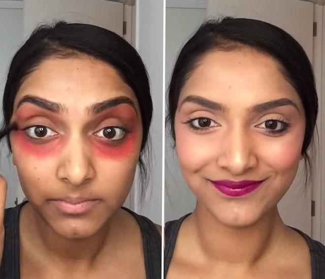 A técnica de esconder as olheiras com batom vermelho funciona, porque segue uma regra que os maquiadores profissionais utilizam dia a dia no seu trabalho, que se baseia em corrigir aquelas desigualdades de cor na pele do rosto utilizando um tom oposto. Ou seja, da mesma forma que se utiliza um corretivo verde para esconder a vermelhidão, a cor vermelha será útil para esconder as olheiras esverdeadas ou azuladas nas peles médias-escuras.
