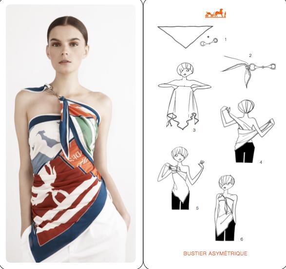Para criar esta blusa, deverá começar por dobrar o lenço ao meio criando um triângulo. Depois peque nos dois bicos do triângulo e prenda-os atrás do pescoço. Peque nas extremidades de baixo e prenda nas costas. E já tem a sua blusa pronta!