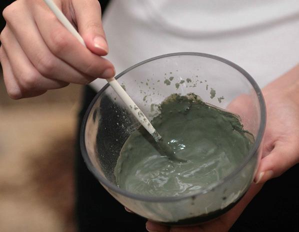 Para fazer uma máscara de argila para o cabelo comece por misturar um pouco de argila com água morna num recipiente que não seja de metal (este elemento provoca alterações na argila). Mexa bem até formar uma pasta e, se quiser, adicione também queratina líquida. Este produto ajuda a fortalecer o cabelo.