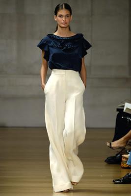 Em um momento de dúvida quanto ao tecido pelo qual optar, saiba que os mais finos, como seda ou crepe, conferem menos volume às pernas; por outro lado jeans e veludo engrossam. As pantalonas de linho são as mais clássicas mas, caso as vista para usar no trabalho, tome cuidado com a transparência.