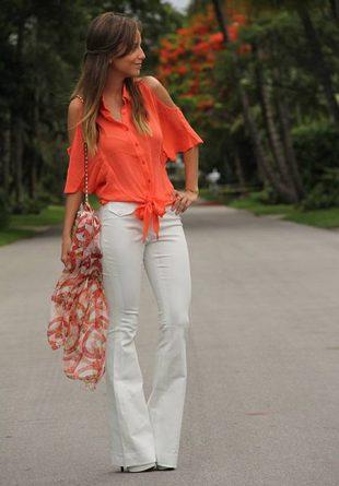 Uma das dúvidas que surgem a quem quer usar a calça flare é se este modelo pode ser utilizado com calçados sem saltos. Para todas as mulheres que não querem abdicar do conforto nos pés, a resposta é sim, a calça flare pode ser usada com rasteirinhas ou sapatilhas, de preferência de bico fino. Se for baixinha, então uma dica é usar a sua calça flare com tons próximos, ou seja, combinar todas as peças do look em tons semelhantes. Esta dica também serve para as gordinhas. Para as magrinhas a dica é apostar em detalhes na calça, como os bolsos traseiros, pois eles criam mais volume nesta área. Lembre-se que, o tamanho da boca também influencia nos resultados, quanto maior ela for, maior será a sensação da pessoa ser mais baixa.