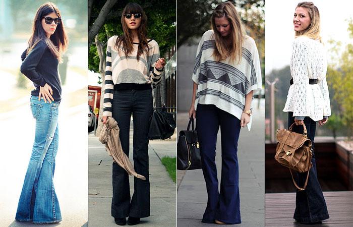 O melhor das calças flare é que você pode usá-las com praticamente tudo, desde camisetas, blusas, camisas, camisas jeans, suéter, cardigã, blazer ou jaquetas. Lembre-se que o segredo está nos materiais das peças que escolher, conseguindo assim um look mais elegante ou pelo contrário mais casual.