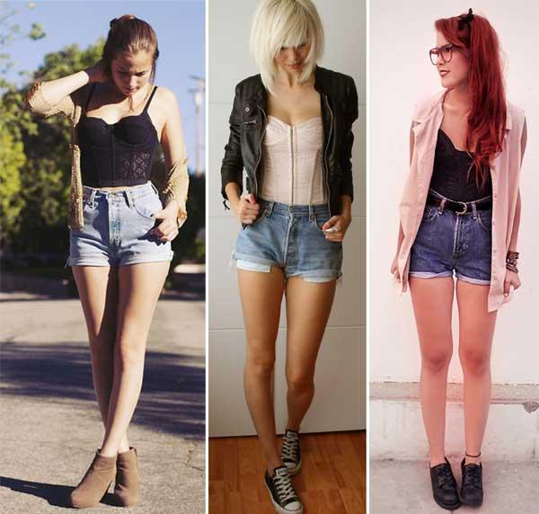 Espartilhos vão muito bem quando combinados em looks com shorts, apenas é necessário ter cuidado com a combinação caso não queira parecer vulgar. Opte por montar seu look com shorts não tão curtos e justos.