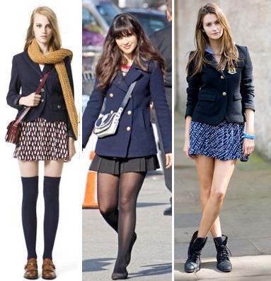 Você pode se inspirar no estilo college assistindo sobretudo a primeira temporada de Gossip Girl e analisando a forma de vestir de Blair Waldorf e Jenny Humphrey, bem como prestando atenção na personagem Rachel do seriado Glee e de Ella em Split. A modelo Alexa Chung também é conhecida pelo seu estilo college, porém mais despojado.