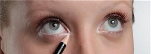 Para criar a sensação de que tem os olhos maiores, aplique o lápis branco na linha d' água. Abra seu olho e passe o lápis até que a linha fique toda uniforme.