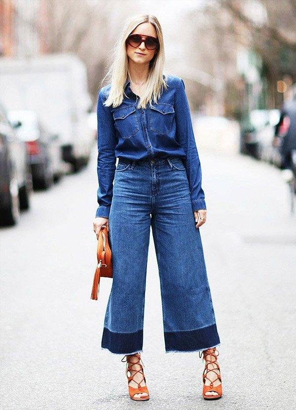 A calça pantacourt jeans é linda e super original. A grande vantagem dessa calça nesse tecido é que ela combina com praticamente tudo. E ainda fica super estilosa com camisa jeans. Quando for fazer o look inteiro jeans, lembre-se de investir em detalhes e em acessórios para deixar o look ainda mais pessoal e estiloso.