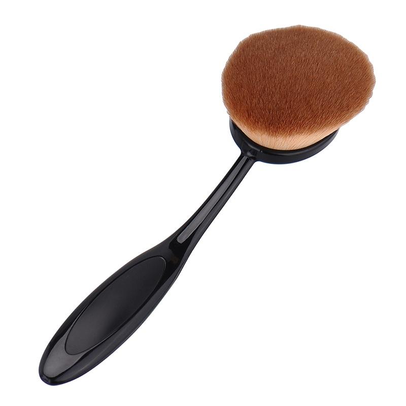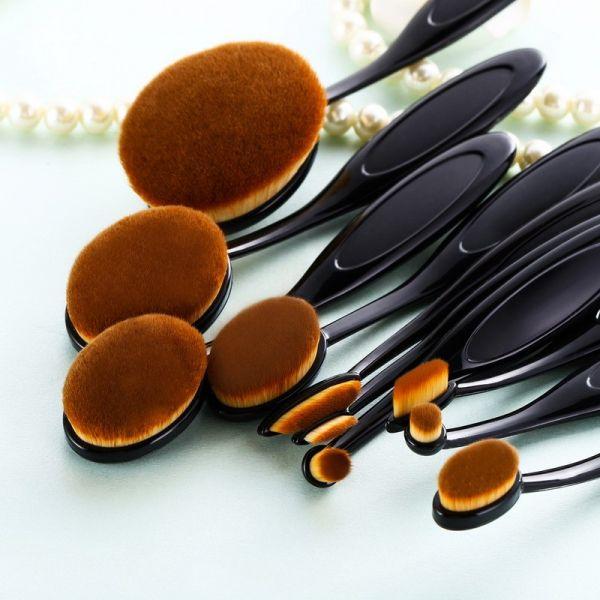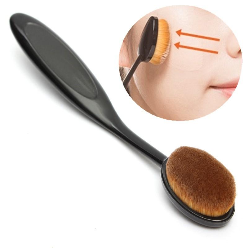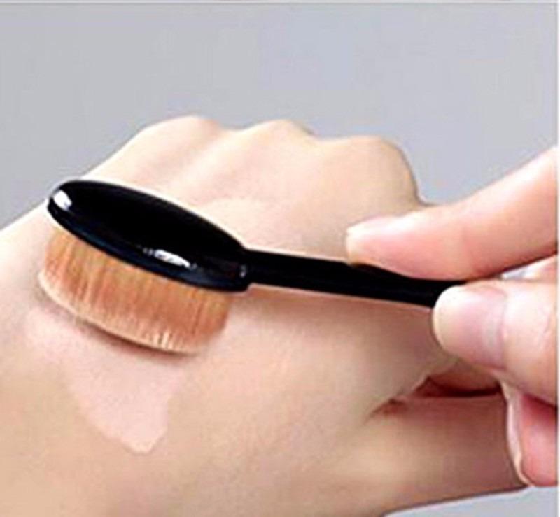 No caso dos produtos em pó o procedimento para usar pincéis ovais na maquiagem é um pouco diferente. Com eles é melhor usá-los para dar leves batidinhas sobre a maquiagem em pó e então aplicar na região desejada com movimentos suaves. Diferente dos produtos líquidos e cremosos que têm um efeito mais polido, os produtos em pó saem com um efeito mais pesado e seco quando são aplicados com os pincéis de escova.