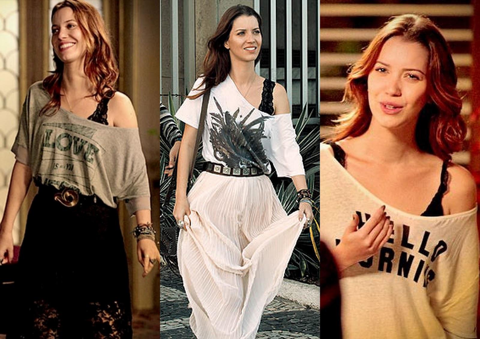 As blusas soltinhas conferem um look bem descontraído. Dependendo do modelo, o sutiã pode ficar aparecendo na zona do decote ou na área dos ombros. Neste caso, o sutiã pode ser usado como uma forma de dar vida a uma blusa básica e criar um look mais pormenorizado.