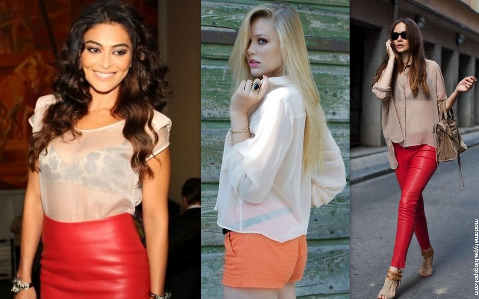 Para um look de transparência delicado, prefira combinar o tom do sutiã com a cor da saia ou calça que está usando no momento.