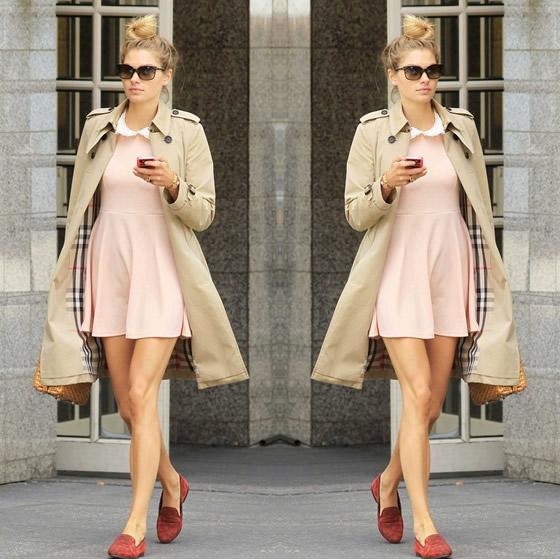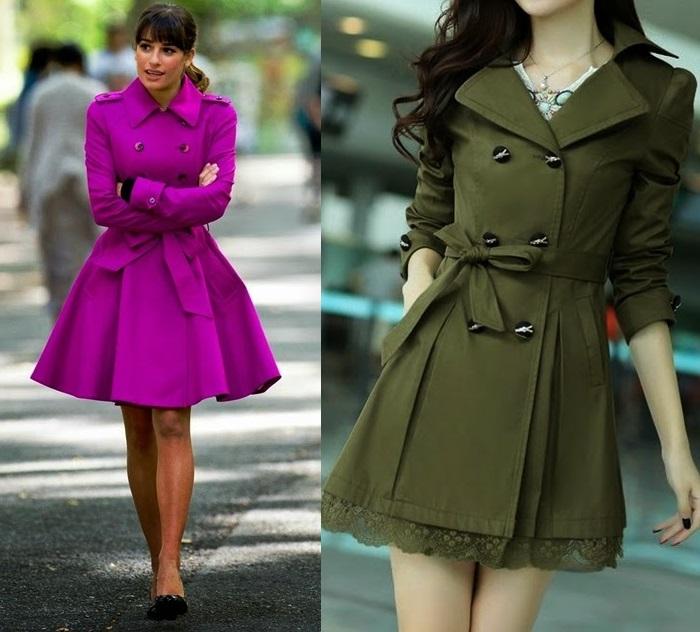 O próprio trench coat por vezes também é usado como vestido, e resulta bem pois ninguém sabe se por baixo dele estamos usando um short ou outra peça mais curta. Neste caso é lógico que o modelo a usar deve ser o mais comprido e, apesar de ser arriscado, principalmente se você se esquecer que não está vestindo nada por baixo e decidir abrir o casaco, ele irá alongar sua silhueta conferir um look de uma única peça. Nesta situação conjugue-o com salto alto e, se quiser, com meia calça também.