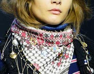Os lenços palestinos são ideais para dar um toque original e juvenil aos estilos. Trata-se de lenços quadrados que você deve pegar por dois de seus cantos para formar um triângulo, depois colocar o lenço embaixo de seu queixo, passar as pontas pela parte de trás e deixar que caiam para a frente.