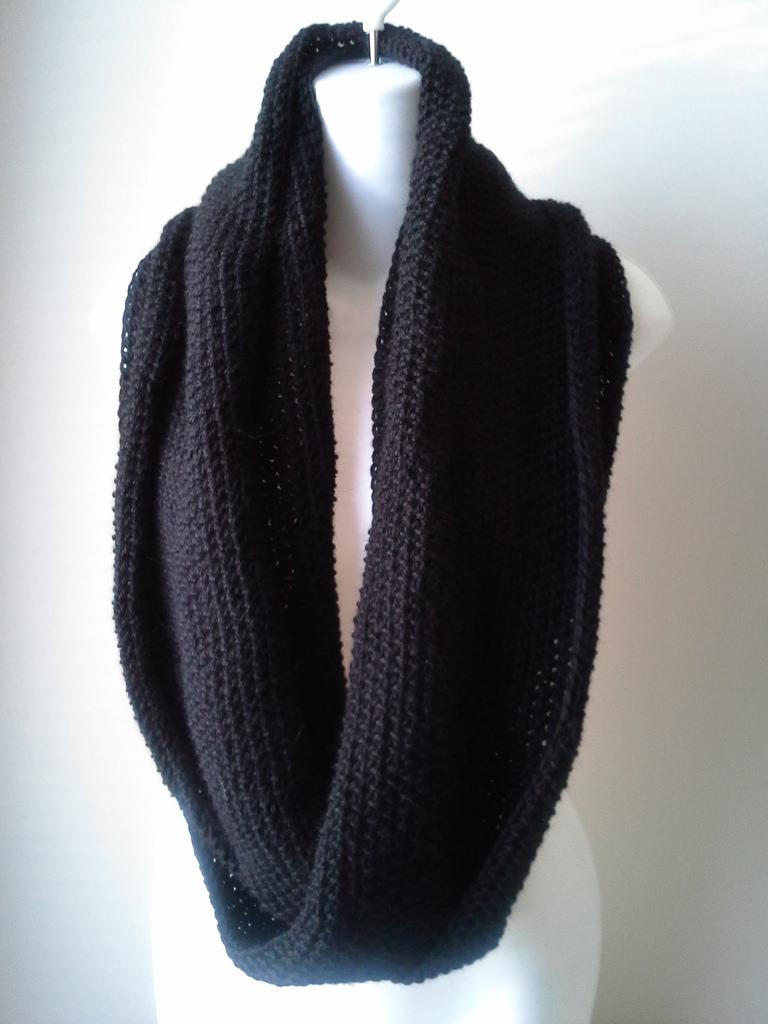Esta é a forma mais fácil e prática de usar um cachecol infinito, é adequada a decotes baixos. Disponha a cabeça dentro do cachecol ficando o pescoço no seu interior. O cachecol deverá ficar caído sobre a sua frente permitindo ver claramente a forma do círculo. Esconda as costuras do para que fiquem contra o seu corpo ou atrás na nuca.