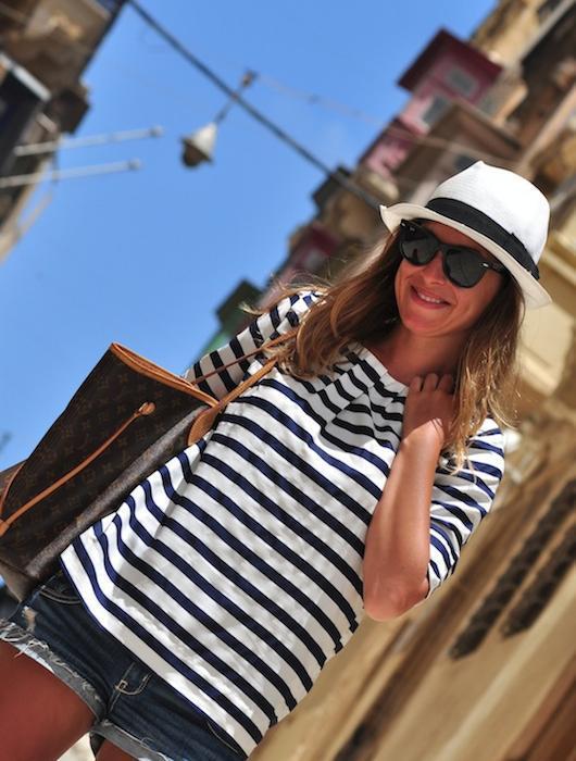 Outra boa ideia para poder combinar um chapéu de praia de forma atual é usá-lo com peças de roupa que sejam de essência marinheira; desta forma, você consegue um conjunto 100% de praia perfeito, não só para tomar sol, mas também para dar um passeio de barco ou para comer em um bar da orla.