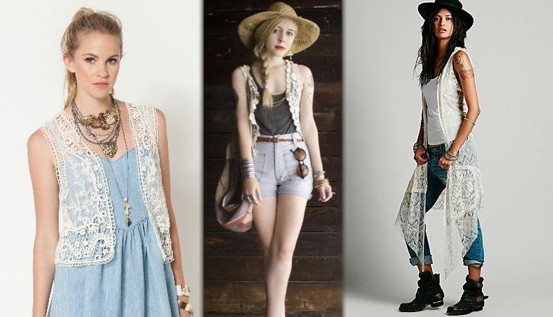 Ultimamente está muito em alta a moda hipster, ou seja, um tipo de estilo que recupera algumas roupas vintage ou retro e as mistura com outras bem mais atuais conseguindo, assim, um estilo renovado onde o passado e o presente andam de mãos dadas. Se você gosta deste estilo, uma das formas que pode usar um colete de renda é a que mostramos na imagem e que cumpre 100% com o estilo hipster.