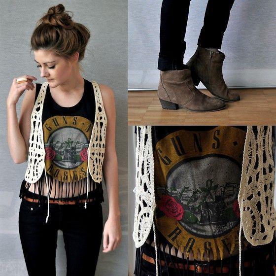 O estilo roqueiro continua forte, pois configura a imagem de uma mulher sexy, ousada e com uma grande personalidade. Portanto, se você for apaixonada por este visual pode aproveitar seu colete de renda para conseguir essa aparência diferente e moderna de si mesma.
