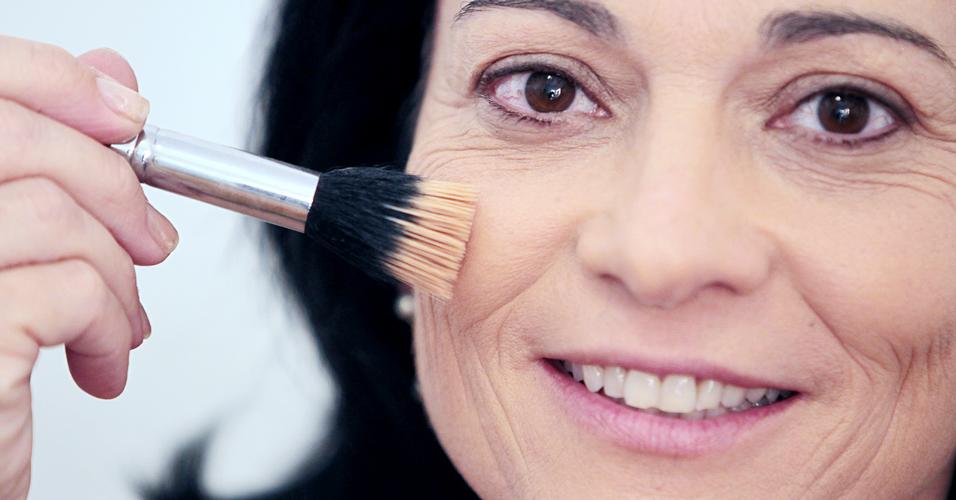 Outra das dicas de maquiagem para mais de 40 anos é não abusar do pó compacto, pois usado em excesso ele pode realçar as linhas de expressão e rugas. Então você deve optar pelo pó mais fino que encontrar no mercado e usar com moderação, não sendo necessário aplicar o pó por todo o rosto, pois assim você mantém a hidratação e a luminosidade da pele. Passe apenas uma camada fina de pó sobre as olheiras, pressionando ligeiramente com o pincel.