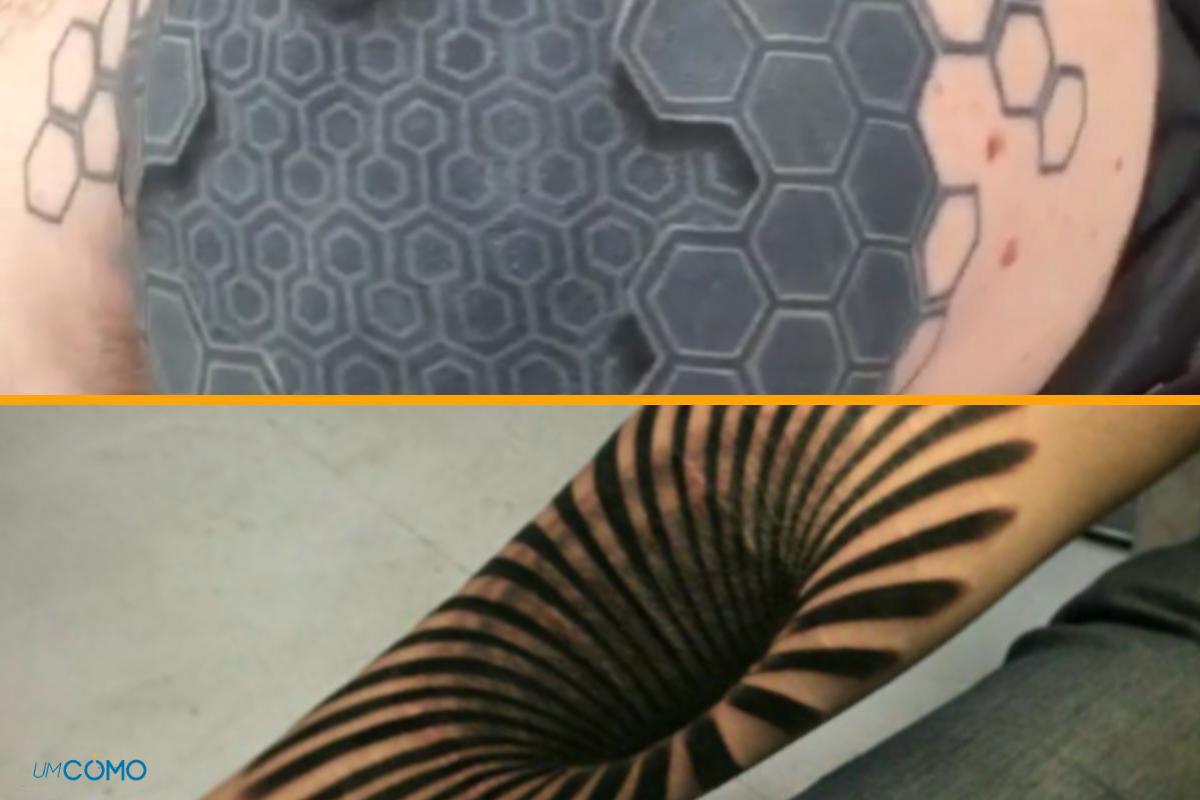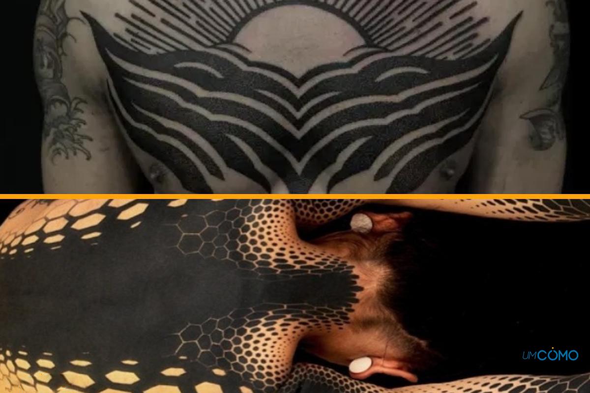 Uma variação do estilo é o blackout, feito por meio de desenhos em tinta negra de maneira completa, deixando que a forma do desenho criado acabe sendo a própria área a ser tatuada. Frequentemente os desenhos são de estilo neotribal ou geométrico, consistindo simplesmente em cobrir uma parte do corpo. É por isso que esse estilo às vezes é usado como uma técnica de preenchimento para unir tatuagens.
