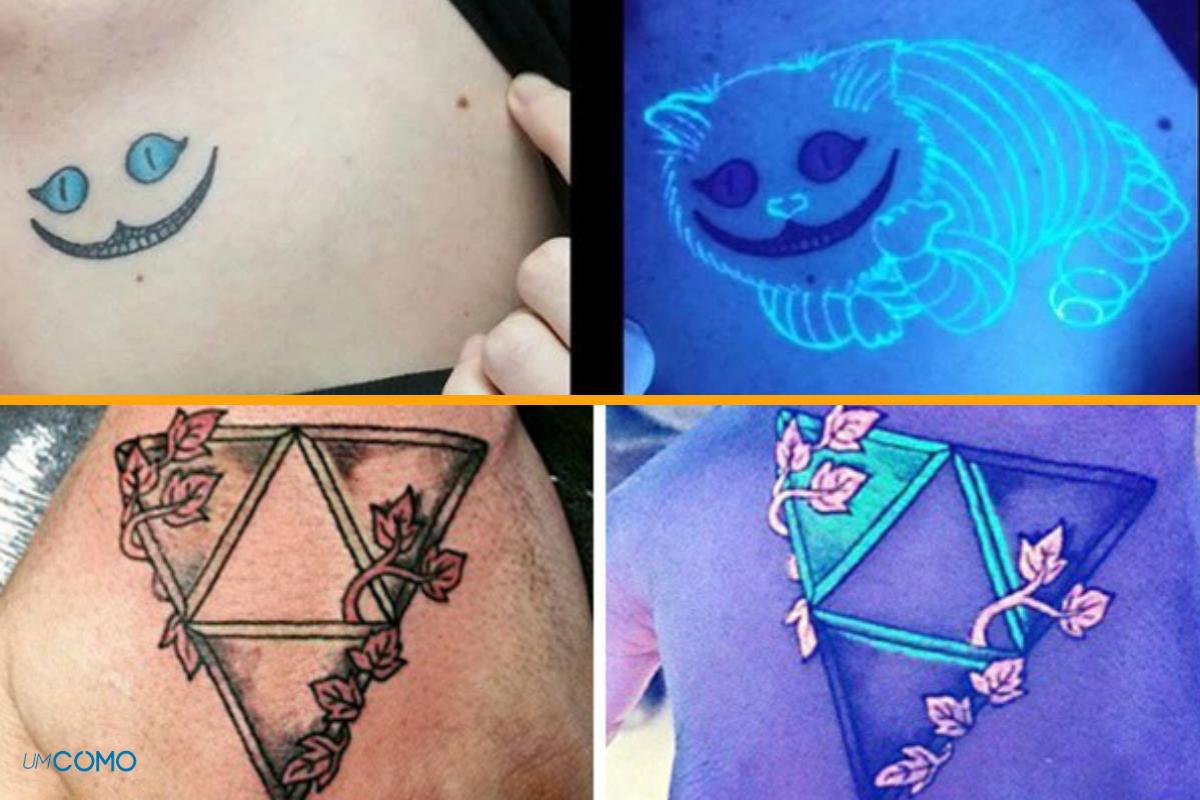 Assim, essas tatuagens que brilham no escuro com esse tipo de luz, ou que possuem uma parte desenhada com tinta fluorescente, podem ser vistas facilmente em bares e baladas, ou mediante um dispositivo como uma lanterna especial para luz negra.