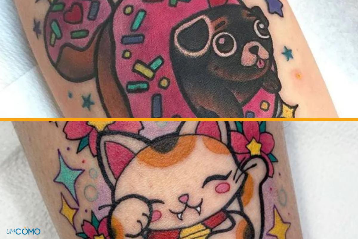 Assim, os motivos ou personagens principais usados nessas tatuagens são algo super variado e, além disso, podem ser feitos mediantes diferentes técnicas: preto, cores vivas e sólidas, aquarela, desenhos geométricos, realistas, etc.