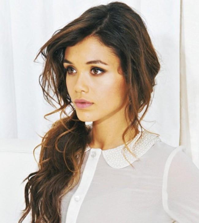 Recomendamos que antes de prender o cabelo, faça os cachos e fixe com espuma; depois, leve o cabelo para um lado com um rabo de cavalo baixo e deixe soltas bastantes mechas para ter um look mais desarrumado. Como toque final, um pouco de laquê e estará preparada para triunfar.
