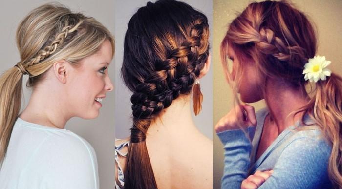 Na imagem que mostramos a seguir verá três exemplos de penteados que combinam o rabo de cavalo com as tranças e, como pode ver, são muito simples pois a única coisa que tem que fazer é trançar uma mecha do seu cabelo e, depois, fazer o rabo de cavalo que mais gostar. Estará linda.
