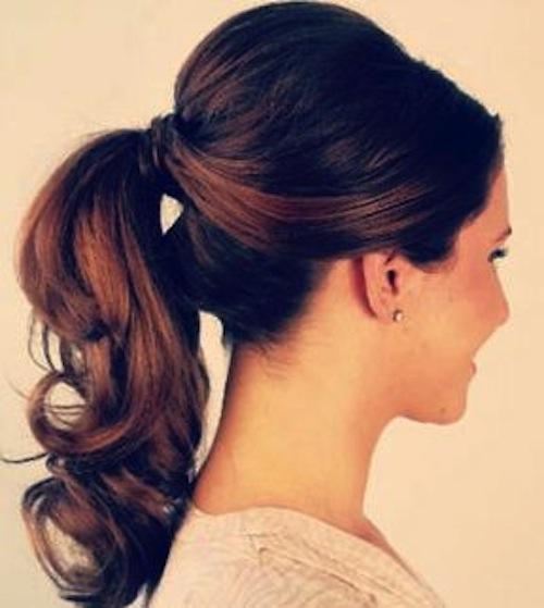 Mas para que o penteado pareça cuidado e de bom gosto, o melhor é fazer algumas ondas ondas na rabo de cavalo para, assim, dar uma maior sensação de volume ao penteado. Como pode ver na imagem, o melhor é deixar algumas mechas de cabelo junto às orelhas para que o rosto não fique tão desocupado e para que consiga um aspecto de arrumada porém informal.