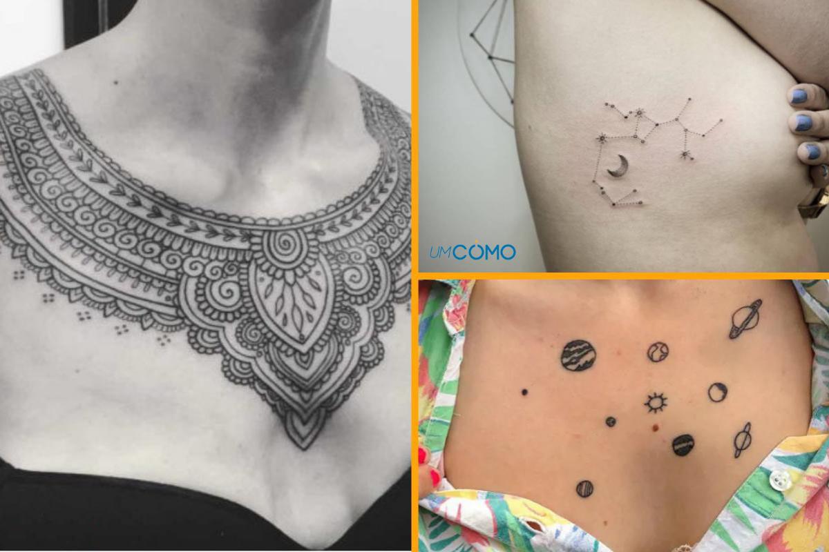 Um dos erros mais frequentes é pensar que tatuagens no peito são só para homens. Nos últimos anos, cada vez mais mulheres optam por designs criativos e bonitos no peito. Essa moda é muito ampla e há espaço para todos os tipos de tatuagens, pois você vai conseguir um decote mais sexy e uma imagem muito mais ousada. Para fazer uma tatuagem no peito, você pode escolher designs grandes ou pequenos, chamativos ou discretos.