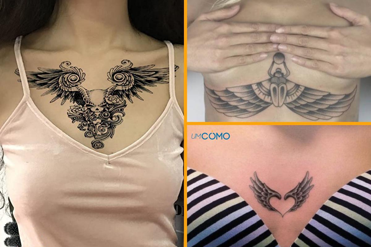 Outra boa opção, é fazer duas asas no decote acima ou abaixo, que funcionam como um contorno do seu peito, para realçá-lo e destacá-lo. Se você está procurando por tatuagens femininas sexy, essa é a ideia perfeita. Além disso, você pode misturar as asas com outros elementos, ou tatuar personagens ou símbolos que incorporam asas, como os pássaros que falamos antes, mas também outros animais, como insetos, ou mesmo deuses.