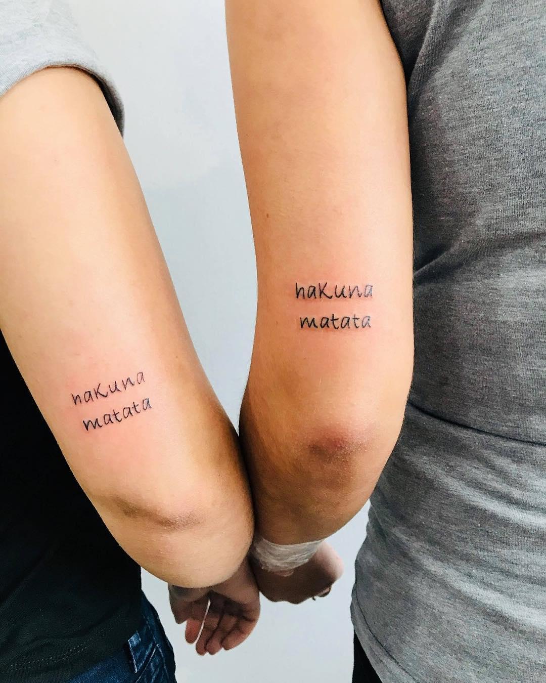'Hakuna matata' é uma expressão originária da língua africana suailí (ou swahili) , falada na parte da África Ocidental (mais especificamente no Congo, Tanzânia, Uganda e Quênia) que significa, ao pé da letra, 'sem problemas'. A expressão ganhou popularidade ao ser cantada pelos personagens Timão e Pumba na primeira versão do filme 'Rei Leão', lançado em 1994, e relançada em 2019. Com o sucesso do filme e dessa canção, especificamente, muito mais do que uma expressão suailí, Hakuna Matata passou a ser encarado como uma espécie de lema e filosofia, tornando-se objeto da indústria cultural e de tatuagens com frases e símbolos de hakuna matata, que passaram a ter uma interpretação específica. Neste artigo do umCOMO você vai entender o que significa a tatuagem Hakuna Matata, suas possíveis interpretações e fotos de tatuagens hakuna matata para se inspirar!