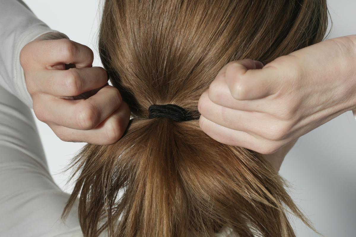 O rabo de cavalo sempre é um must para estar bem penteada no trabalho. Nesta ocasião, sugerimos uma opção minimalista que garante elegância e, ao mesmo tempo, é super fácil de fazer. O rabo de cavalo baixo partido ao meio é uma opção ideal e sofisticada, além de proporcionar um efeito lifting imediato. Penteie o cabelo para trás com a risca no meio e prenda-o em um rabo baixo. O resultado é perfeito, especialmente para cabelos longos.