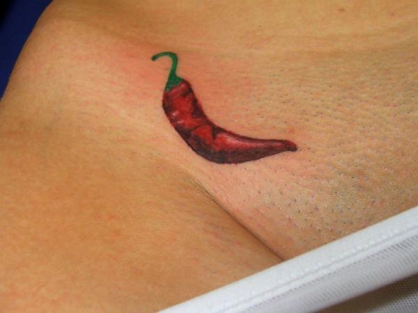 Quando se fala em tatuagem íntima sem dúvida a pimenta é a opção mais escolhida, isso porque ela é um alimento quente e com uma conotação sexual muito forte ligada à sensualidade.