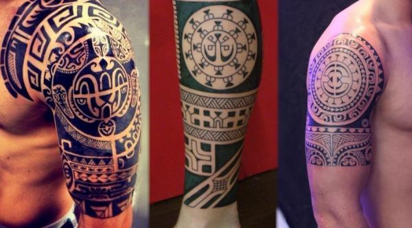 As imagens arredondadas em estilo tribal ou maori também são bastante vistas nos ombros de mulheres, inclusive, as em espiral e arredondas, que seguem o desenho natural da articulação. Já quando esses tipos de tattoos são vistos nos ombros de homens, o mais comum é que possuam traços mais grossos e que até mesmo se estendam pelo braço, podendo ou não chegar ao antebraço. Enquanto nas mulheres, quando a imagem extrapola a região do ombro, elas seguem, geralmente, para as costas.