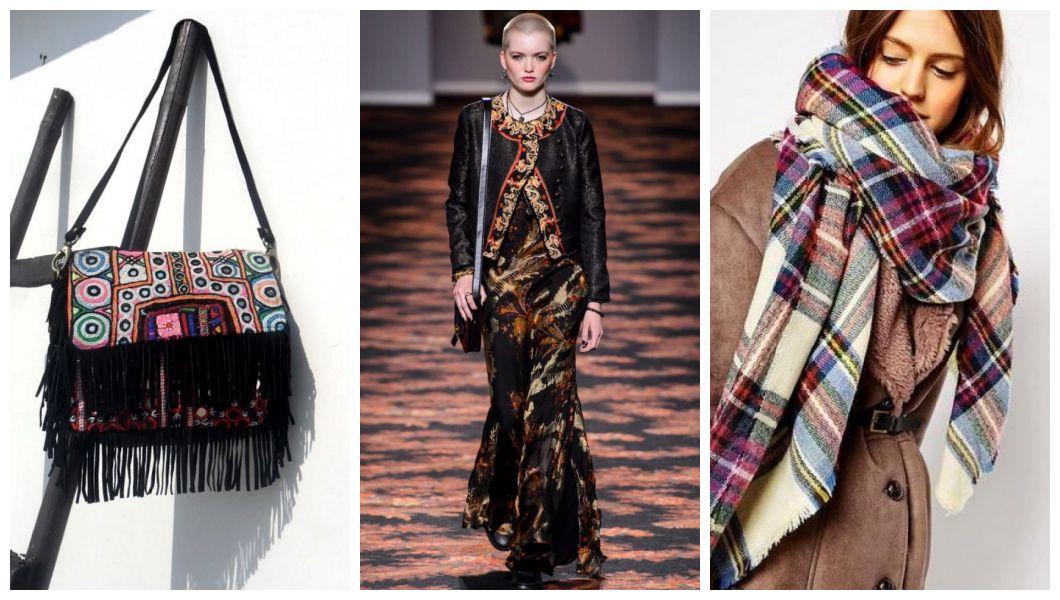 O estilo folk, com uma pegada mais artesanal, misturando estampas, texturas, franjas e tudo o que seja ou pareça artesanal se mostrou presente em combinações para o inverno. Nessa mesma tendência podemos incluir a pegada roupas que parecem ou lembram muito um 'cobertor' que apareceu tanto em casacos, cachecóis e bolsas. Veja mais detalhes em tendências de acessórios no outono inverno.