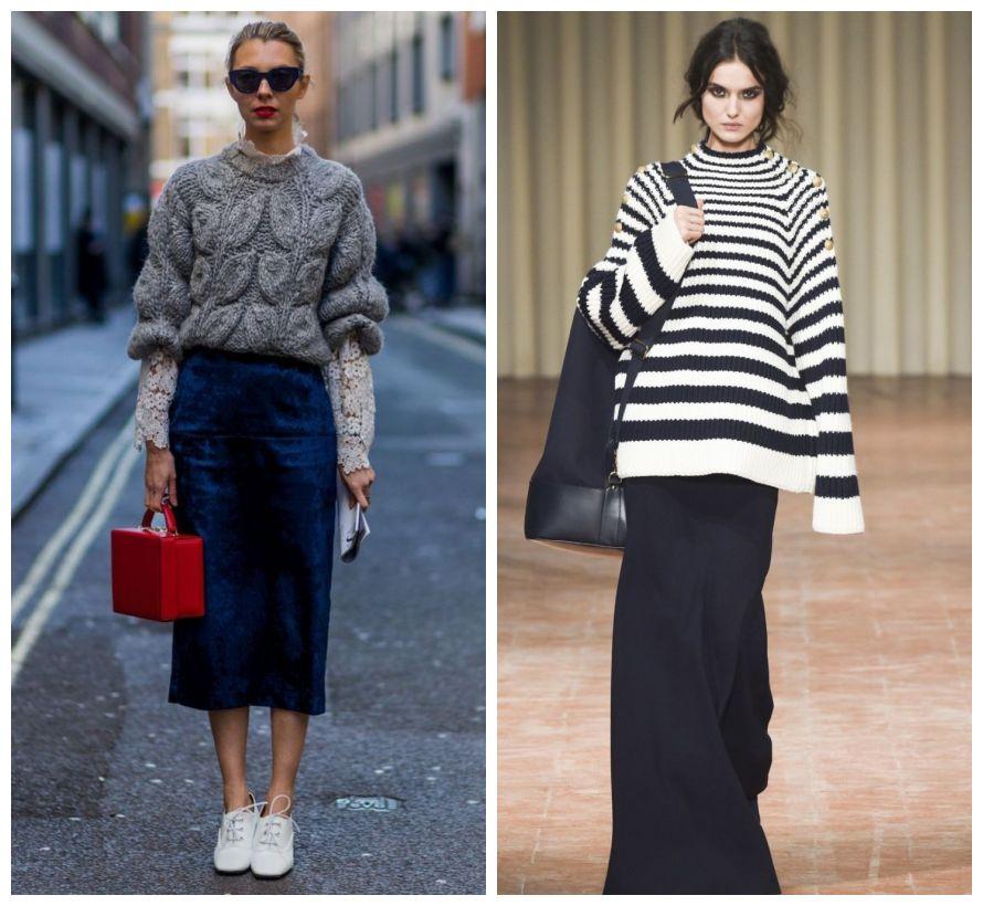 Outra tendência que não podia faltar neste inverno é o tricô, ideal para os dias frios de inverno. Com blusas de tricot você pode fazer as mais variadas combinações, pode usar com uma simples calça jeans ou então com uma saia rodada de couro para conseguir um estilo mais descontraído.