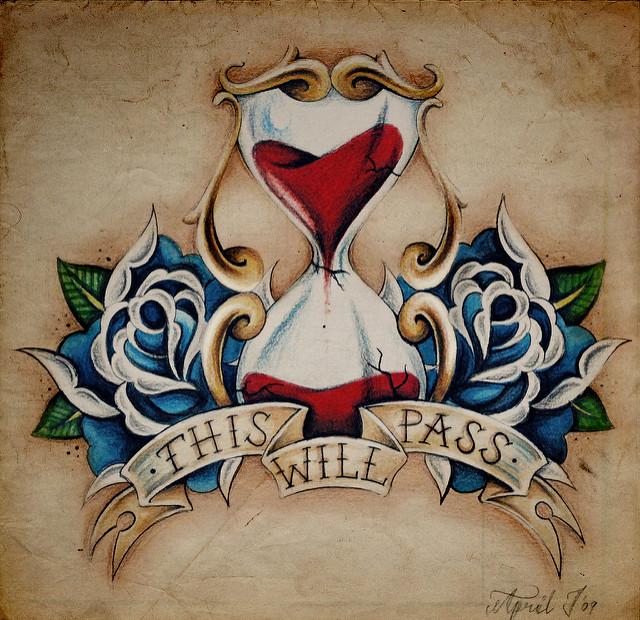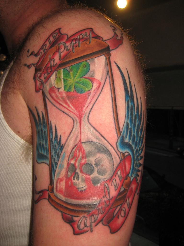 A imagem do relógio de sol com asas resume bem o significado da tatuagem de ampulheta que é, na grande parte das vezes, a de passagem do tempo. Como o tempo é algo presente a todo o instante e como é permanentemente passageiro nada melhor do que representar a tatuagem com o clássico ditado que diz “o tempo voa”. Basicamente é sempre esse o seu significado, embora possa ter conotações diferenciadas, como é o caso de quando uma caveira acompanha a ampulheta.