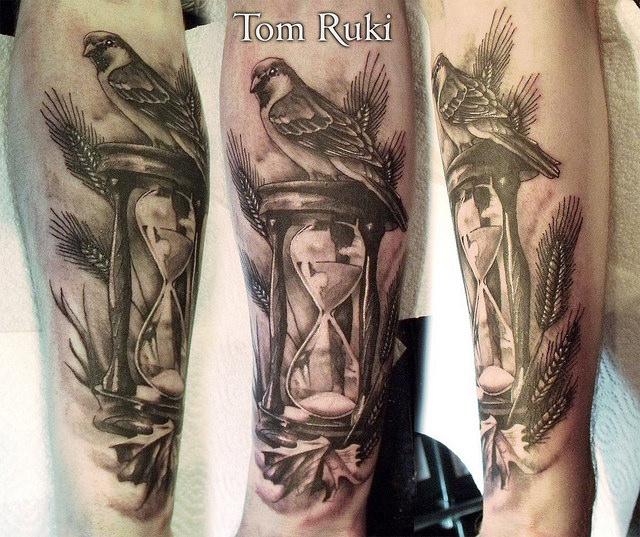 A ampulheta é uma imagem bastante versátil na hora de ser tatuada na pele, uma vez que são muito comuns as tattoos bastante coloridas com essa imagem e mesmo as feitas apenas na cor preta e com sombreado. Além disso, embora seja possível encontrar tatuagens onde o único desenho é o do relógio de areia, o mais comum é que ele se combine com outros elementos, como rosas, laços, olhos, caveiras, pássaros e mesmo com asas, uma de cada lado do objeto.