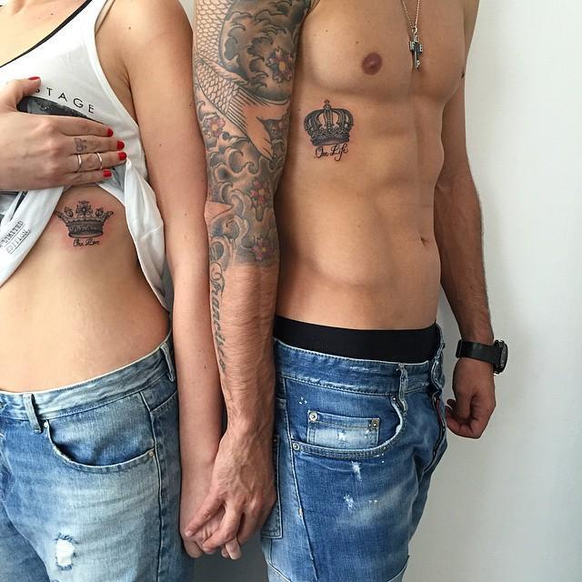As tatuagens de coroas também podem fazer referência ao amor incondicional entre um casal. Ele tatua um design tradicional das coroas dos réis e ela fará um desenho de uma coroa das rainhas. Desta forma estão estabelecendo um vínculo especial e inseparável do seu amor ao mais puro estilo dos contos de fadas.