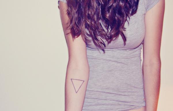 Os triângulos são das figuras geométricas mais tatuadas. São simples e podem ser tão minúsculos que muita gente tatua eles nos dedos. As tatuagens simples ou minimalistas de triângulos incluem um ou vários e são associadas aos quatro elementos: fogo, terra, ar e água.