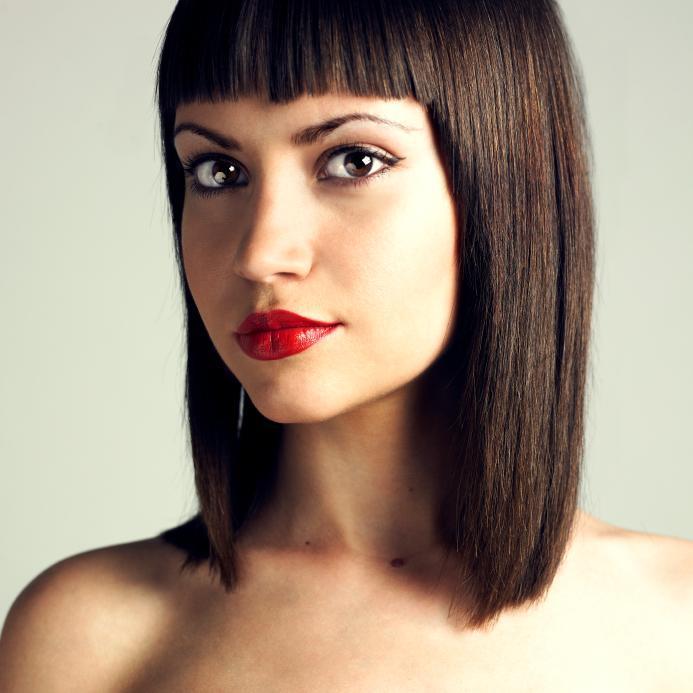 Neste caso, o que se pretende conseguir com a franja é encurtar a expressão facial e dar-lhe uma forma mais arredondada. Para isso são ideais as franjas retas cortadas bem na altura das sobrancelhas que, também, acentuam a expressividade do olhar e aumentam os olhos.