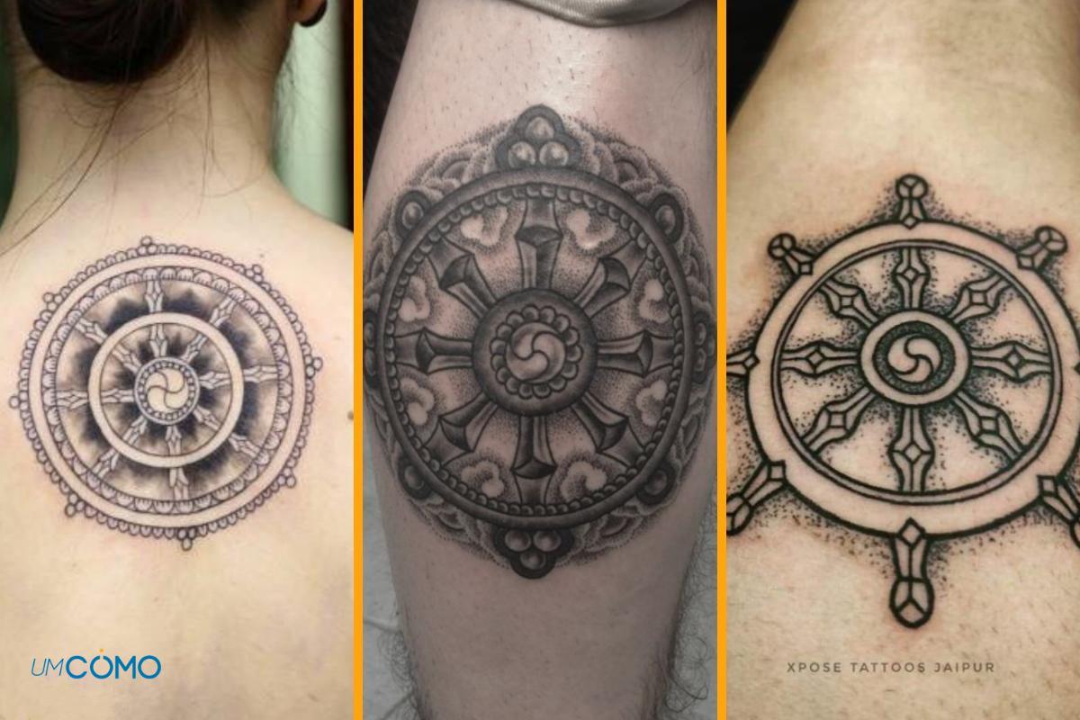 A roda do Dharma é um símbolo muito enraizado e tradicional da cultura budista e, embora não seja tão popular quanto as tatuagens que mencionamos antes, tem um significado muito intenso e que vale a pena mencionar.