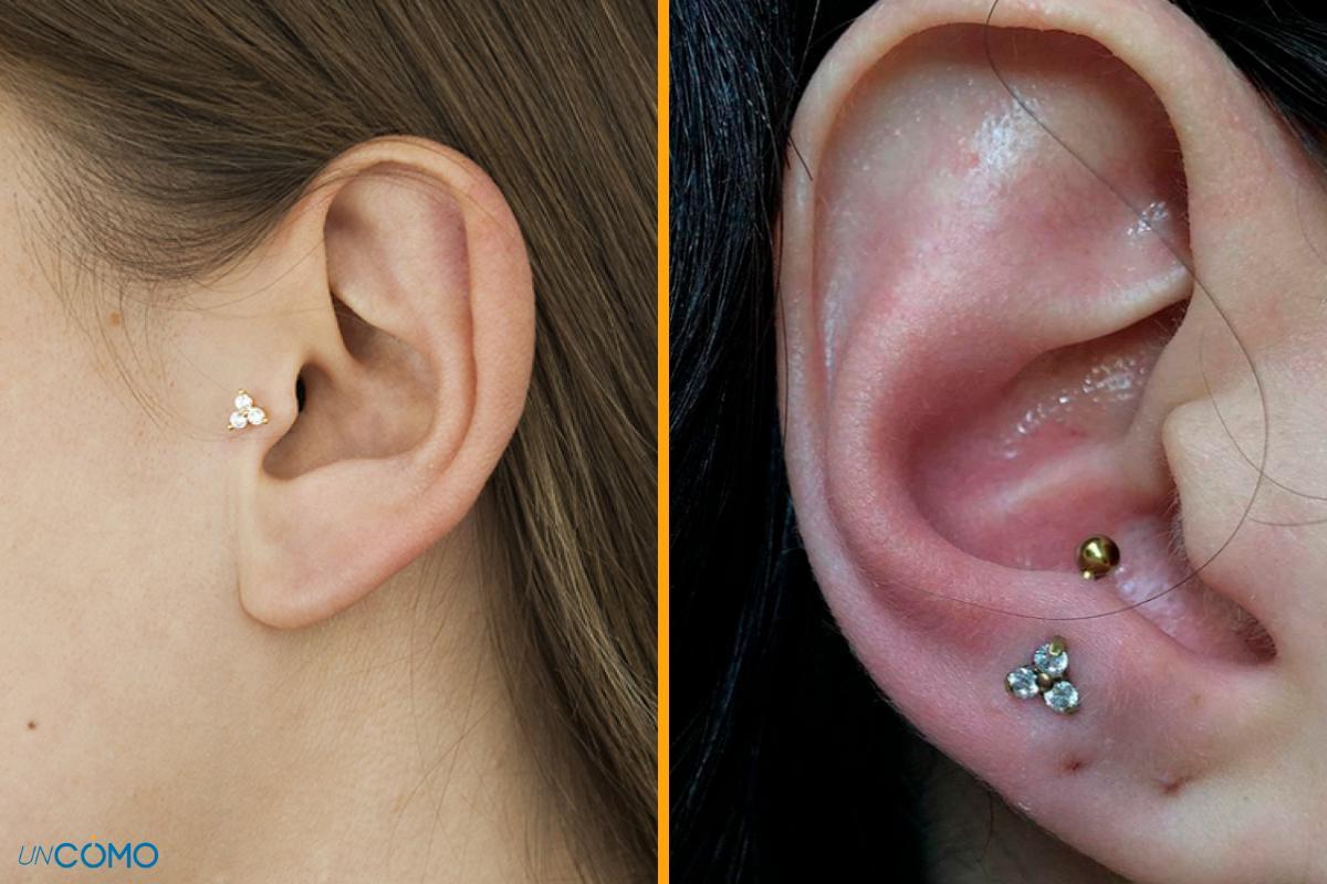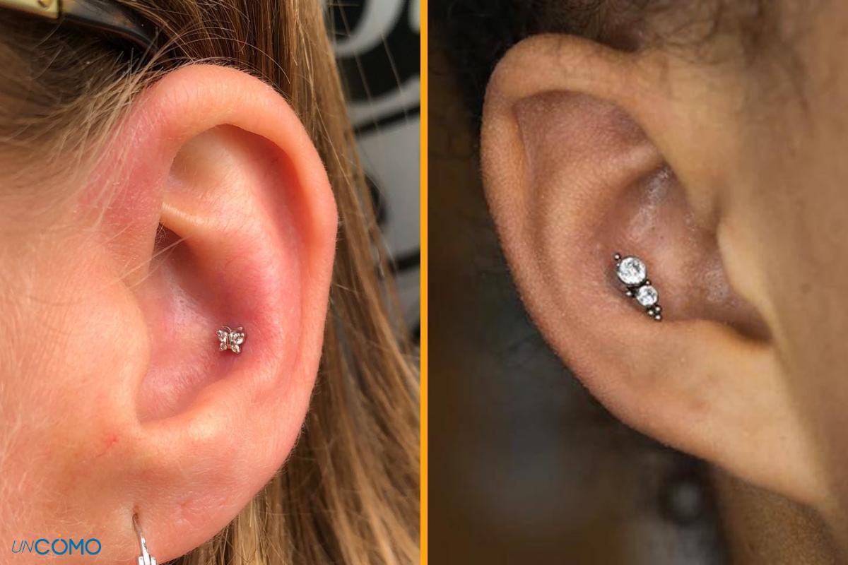 Esse piercing segue a mesma ideia do orbital, mas a diferença é que ele não acaba circundando a orelha, mas fica no primeiro vinco sem passar do limite. Desta forma, o brinco em forma de argola será colocado no meio da orelha, na altura média da cartilagem.