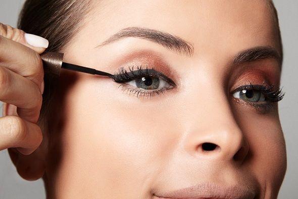 Máscara de cílios é indispensável na maquiagem de olhos, principalmente se você conta com olhos pequenos. Não existe grande ciência em torno da aplicação da máscara de cílios. O truque aqui é passar primeiro o curvex e depois aplicar uma boa máscara de cílios para alongar ou dar volume com movimentos em zig-zag desde a raiz dos cílios. Cílios postiços também podem ser uma boa aposta para destacar o olhar, mas tente não abusar deles. Se borrar o produto, fique tranquila, pegue em um cotonete e rode a ponta do cotonete no local.